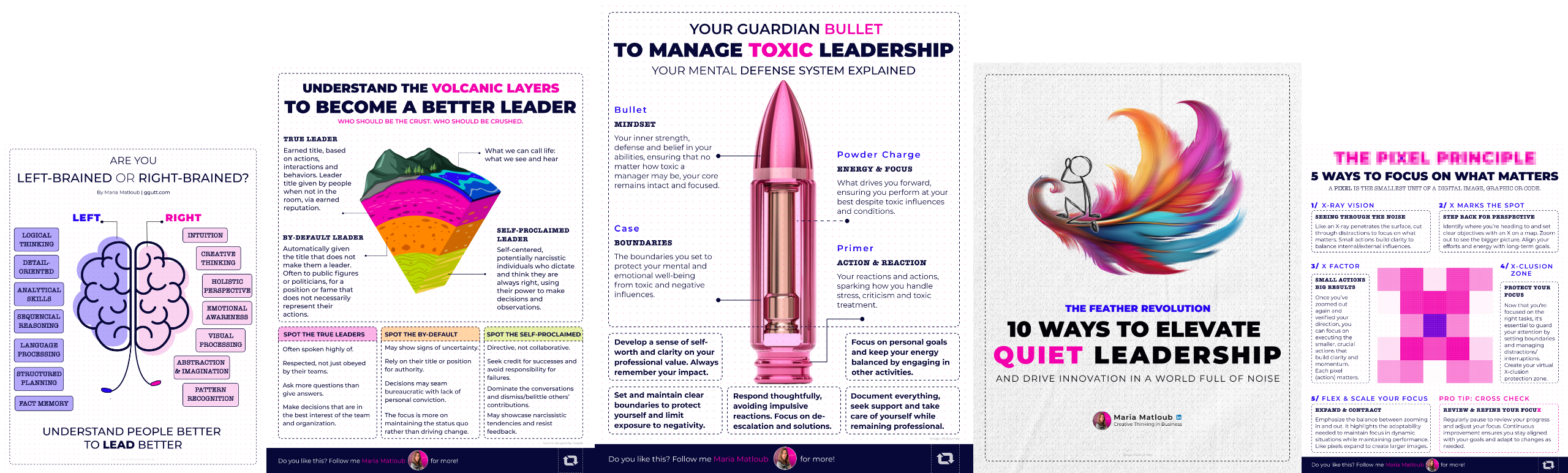 I'm Maria, building the home of Creative and Critical Thinking at GGUTT and sharing my knowledge and experience along the way.Content is a great way to keep learning and to connect with like-minded individuals.I speak about creativity in business, design, innovation and AI.I work with Fortune 500 companies, Big 4, tech startups in accelerators/VCs and academia. A Big 4 dropout.
